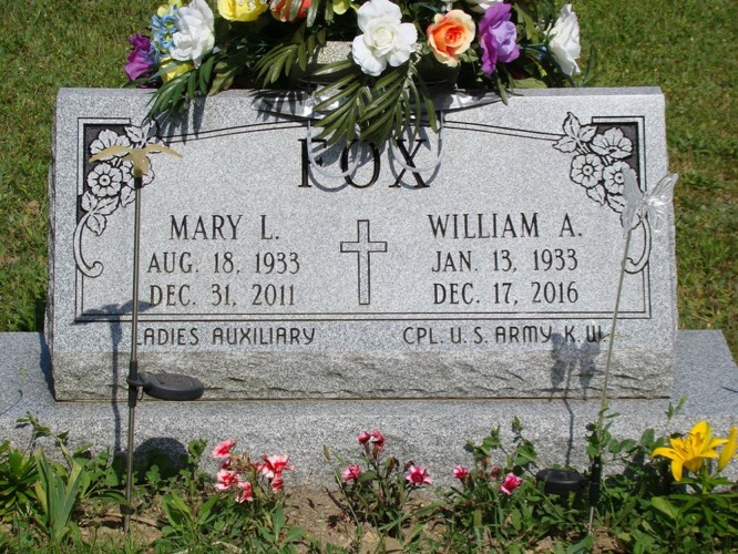 William and Mary Baker Fox Tombstone