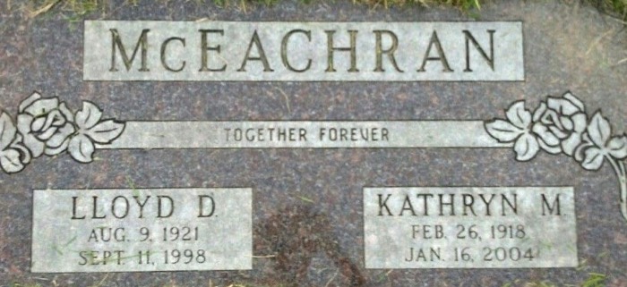 Lloyd and Kathryn Dutro McEachran Tombstone